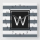 Thick white stripes modern patterned wall clock with black numbers and monogram letter.