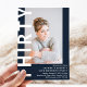 Modern 30th Birthday Invitation - Design features a navy blue background that can be changed to any colour, a portrait photograph, the text 'THIRTY' in bold white font and an elegant birthday party template that can easily be personalised. Stylish, trendy and perfect for any age!