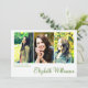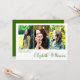 A crisp, clean, modern design features spaces for three large photos on the front and one smaller photo on the back. Available in a variety of colour schemes, this features forest green and white. A contemporary look that's perfect for your young graduate. Shown as a graduation party invitation, all text lines can be customised to easily change to an announcement instead.