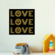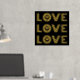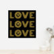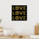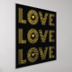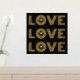 Modern three word "LOVE" and heart gold foil on black print