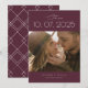A modern Save The Date card that focuses on the date in big bold numbers against a burgundy background, has a wisp of calligraphy and trendy topography script adding just the nuance needed. Easily customise the name, date, location, and photo to make it your own.