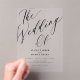 Simple elegant romantic black typography script "the wedding of" acrylic transparent (or frosted opaque) trendy wedding invitation.