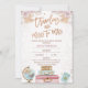Traveling form Miss to Mrs themed bridal shower invitation featuring a rose gold calligraphy heading, and a world globe and suitcases. A blush floral arrangement is also featured as well as a vintage map. This travel themed bridal show invitation is ideal for someone who likes vintage style invitation with a modern twist.