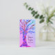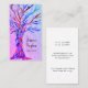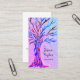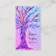 This unique business card is decorated with a Tree of Life design on a pink and purple background.