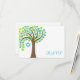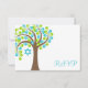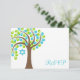 A chic and stylish Tree of Life themed Bat Mitzvah RSVP card. Shown in teal blue, green and brown.