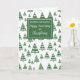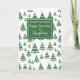 Happy anniversary on Christmas card with modern christmas trees pattern.