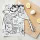 A fun trendy hand-drawn black and white kitty cat decorative pattern kitchen towel by Julie Nicholls©.