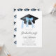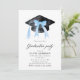 Modern Trendy Blue Bow Graduation Cap Graduation Invitation