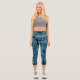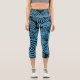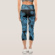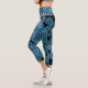 This capri leggings features a modern design with blue circles on a black background. Digital art. Perfect for sports, gym and much more!