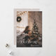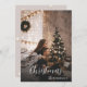 A trendy urban modern holiday photo flat greeting card with a couple's photo and name with a simple minimal background with string lights and holiday tree. Smoky neutral colours. You can order this item in a printed version, downloadable version, or both. This photo is a placeholder that must be replaced with your own creative holiday photo.