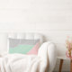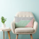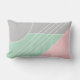 Trendy pastel pink, teal blue, and grey geometric pillow with circle and rectangle shapes and thin lines making a trendy modern living or bedroom accent decor.