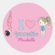 Modern Trendy Cute I Love Gymnastics Personalised Classic Round Sticker
