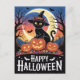 Modern Trendy Halloween Pumpkins and Black Cat Postcard