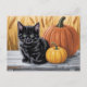 Modern Trendy Halloween Pumpkins and Black Cat Postcard