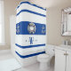Modern Trendy Nautical Blue and White Long Shower Curtain
