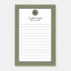 A modern trendy lined notepad with a minimalist design with a stylised monogram medallion. Custom name or custom text presented on a simple white background, framed by an olive green border. Personalise using the fields provided or use the 'message' button to contact the designer for help.