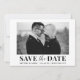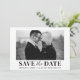 Modern Trendy Save The Date Black and White Photo Card with block script and calligraphy script combination.