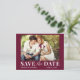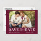 Modern Trendy Photo Burgundy Save The Date Postcard