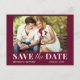 Modern Trendy Save The Date Photo Postcard with block script and calligraphy script combination. Burgundy