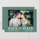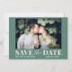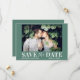 Modern Trendy Save The Date Photo Card with block script and calligraphy script combination. Eucalyptus Green.
