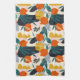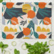 Modern Trendy Preppy Chic Apricot and Leaves Tea Towel