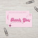 retro-inspired thank you card features a playful pink design with bold, nostalgic typography. Perfect for small businesses, the front showcases a vibrant “Thank You” message with twinkling star accents. The back is customisable with your logo, social media details, and a discount code to encourage repeat customers. Ideal for adding a fun, vintage touch to your brand’s packaging, this card helps you express gratitude while promoting future engagement. Perfect for boutiques, handmade shops, and creative entrepreneurs