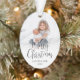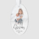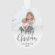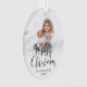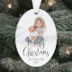 Celebrate the simple joys of the holidays with a custom Merry Christmas two photo acrylic oval ornament. The pictures and all wording on this template are easy to personalise and can be different or the same on front and back. The modern minimalist black and white design features trendy script calligraphy, elegant classic typography, and 2 photos of your choice. This unique holiday keepsake adds a stylish touch to Xmas home decorations. Merry Christmas!