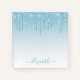 Modern Elegant Fashionable and Trendy Light Blue Glitter Notebook personalised with your Name. Stylish Script. Dripping Glitter with sparkles.