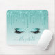 Modern Elegant Fashionable and Trendy Teal Glitter Mouse Pad personalised with your Name. Stylish Script. Dripping Glitter with sparkles.