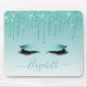 Modern Trendy Teal Glitter Lashes Stylish Script Mouse Mat