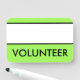This trendy and modern volunteer dry-erase nametag-style badge design features the message "VOLUNTEER". It also features an area where a volunteer’s name could be written using a dry-erase marker. A nametag-style badge like this could possibly be worn to show that somebody is an official volunteer or assistant at an event. [~Z0000359]