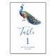 Modern Trendy Watercolor Peacock Wedding Table Number