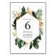 Modern tropical foliage abstract painted wedding table numbers. Part of a modern wedding collection.