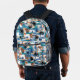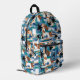 Modern Tropical Checked Pattern Blue Monogram Printed Backpack