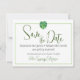 This clean, minimalist green and white modern botanical design elevates a tropical wedding theme.