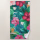 Tropical Floral Botanical beach towel Colourful, vibrant,perfect for summer vacations.This Tropical beach towel is perfect for travel vacations featuring watercolor tropical greenery, monstera and palm leaves with beautiful tropical flowers. Create your own name to this beach towel.