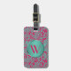 A modern and lush tropical damask pattern in aqua and fuschia embellished with a modern round disc frame and monogram. Personalise with your initials, name or other text by replacing the sample text shown in the design template and the contact information on the reverse side of the luggage tag. You can change fonts and font sizes to accommodate your text.