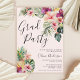 Modern Tropical Floral Pink Graduation Party Invitation