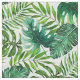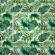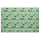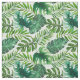 Trendy tropical fabric design featuring watercolor monstera, banana and palm leaves illustrations on a striped background.