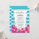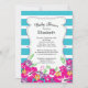 Start your tropical hawaiian baby shower off right with our stunning pink hibiscus flowers & purple hibiscus floral baby shower invitations. Our stylish tropical baby shower invitation features a chic fancy frame and is set on a turquoise blue and white stripe background to really make invitation elements pop and has a coordinating back. Perfect for a contemporary beach baby shower, summer baby shower, spring baby shower or a luau baby shower. Perfect for a girls baby shower or boys baby shower.