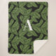 Modern Tropical Leaf Palm Plant Print Monogram Sherpa Blanket