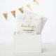 Modern bachelorette weekend favour bag with pretty tropical palm leaves, and the bride to be's name in pretty gold colour hand lettered script.