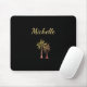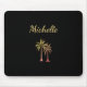 Tropical beach mouse pad, with a colourful palm trees hand drawn illustration on a black background. With gold typography lettering, you customise with your own name. A modern professional addition to your electronics accessories.