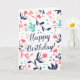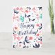 A modern and tropical floral happy birthday typography design with abstract hand drawn flowers in soft pastel pink, coral, mint, navy blue colors. All the elements are movable so you can customize the text to your need.