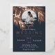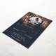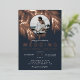 Modern simple real rose gold palm tree watercolor with simple typography, a trendy and tropical wedding theme on palm tree leaf. Add your couple photo on editable simple minimalist dark navy blue background.