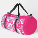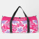Modern Tropical Pink Floral Pattern Personalised Name Duffle Bag features a bright pink, purple and white tropical flower pattern. Personalised with your name. Make a great gift for birthday, Christmas, holidays, Mother's Day and back to school. Perfect for back to school, sports, gym, travel and more. Designed by ©2023 Evco Studio www.zazzle.com/store/evcostudio