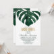 Elegant, modern, and simple green watercolor tropical beach swiss cheese monstera leaf on white background with faux printed gold foil typography summer Bachelorette Party Invitations. This classic and sophisticated design is perfect for the classy, trendy, and stylish Bride to be. Personalise with your own message on the front and a customised monogram on the back. All photo print design.