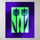 This sleek and modern tulip design brings a fresh, minimalistic vibe with its bold outlines and clean symmetry. Set against a soft green background with a gradient purple frame, the tulips exude elegance and simplicity. The stylised flowers create a calming balance between nature and contemporary art, making this a versatile piece for both traditional and modern spaces.