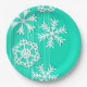 Modern turquoise and white Christmas snowflakes Paper Plate