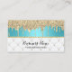 Modern Turquoise Faux Gold Glitter Drips Luxury Business Card